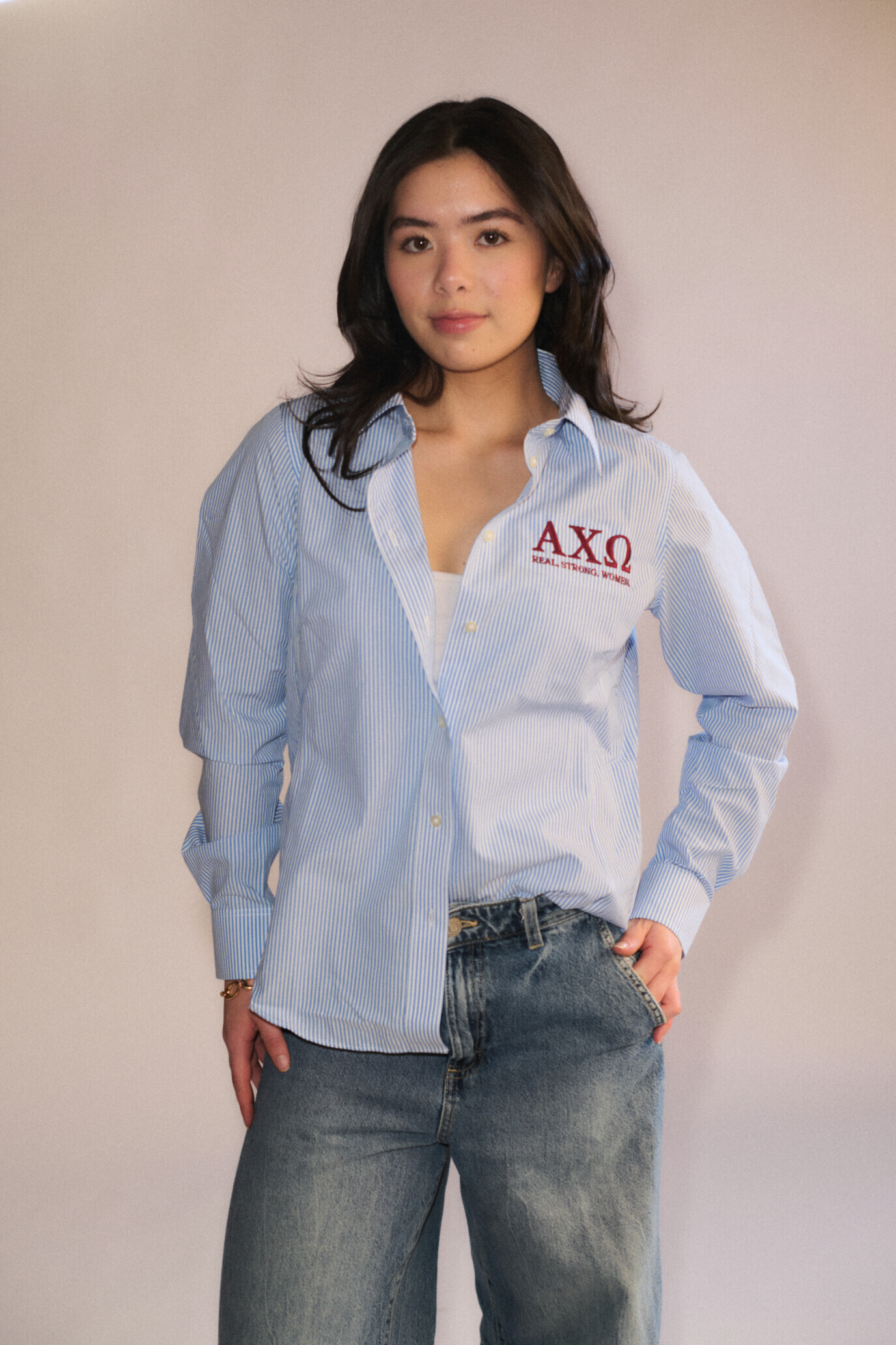 Women's Crown Collection® Banker Stripe Woven Dress Shirt